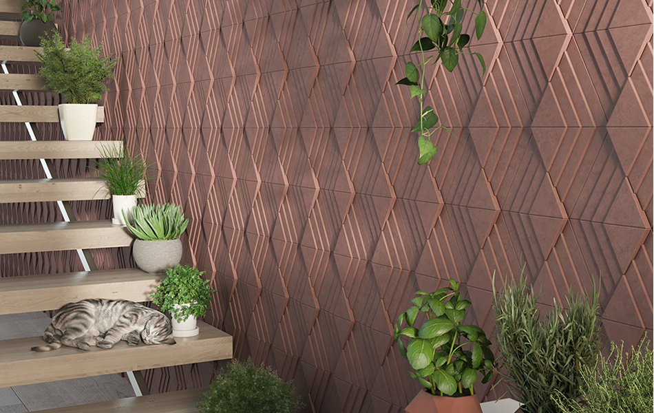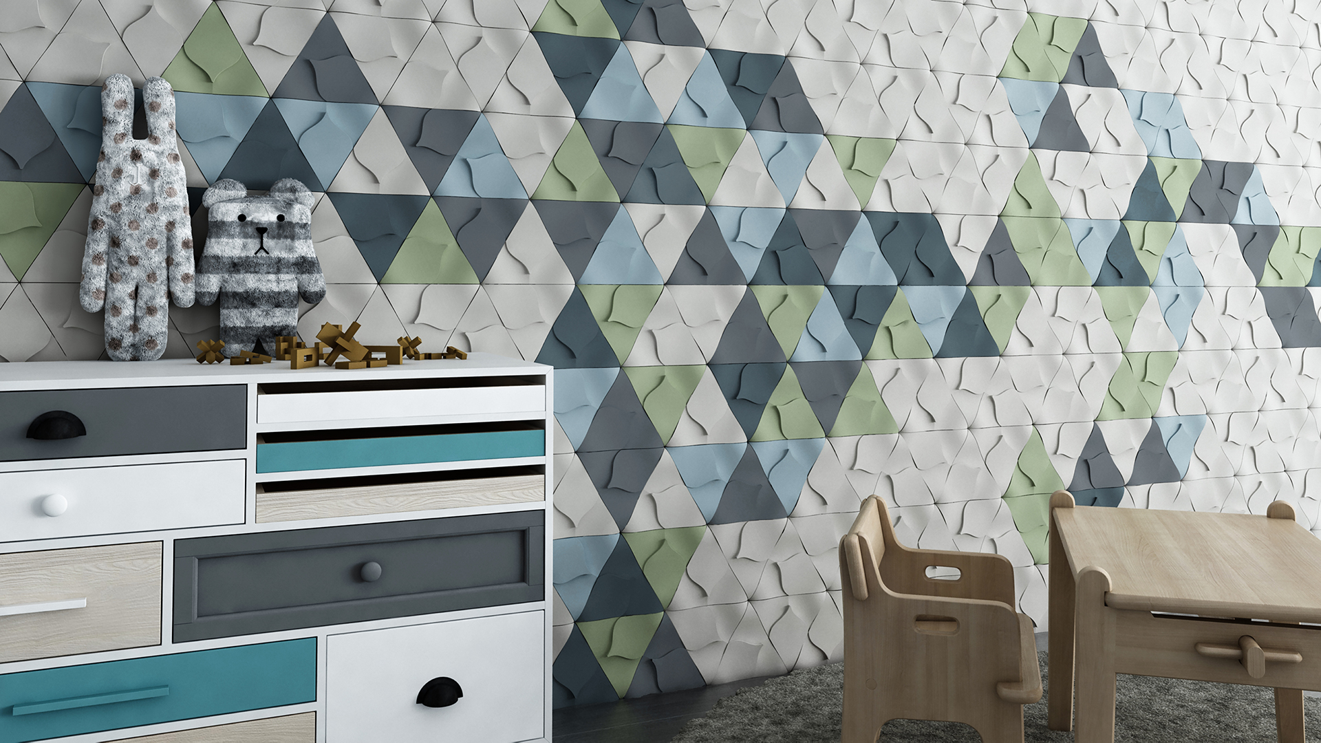 This 3D collection has a symmetric rhythm which gives exclusive atmosphere for large surfaces but it can also create the focus applied in smaller areas.