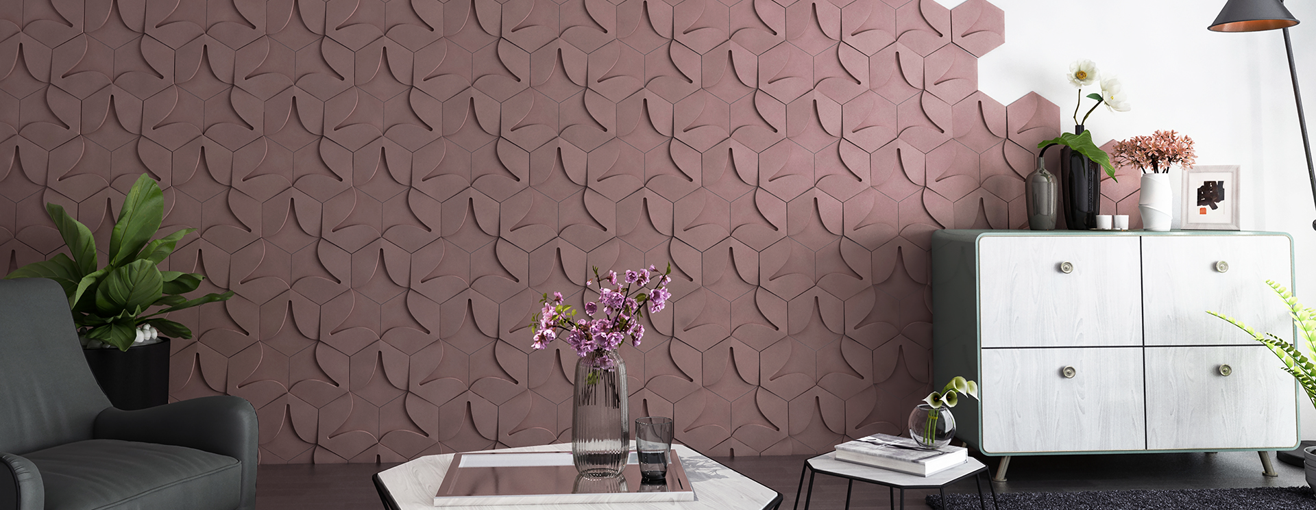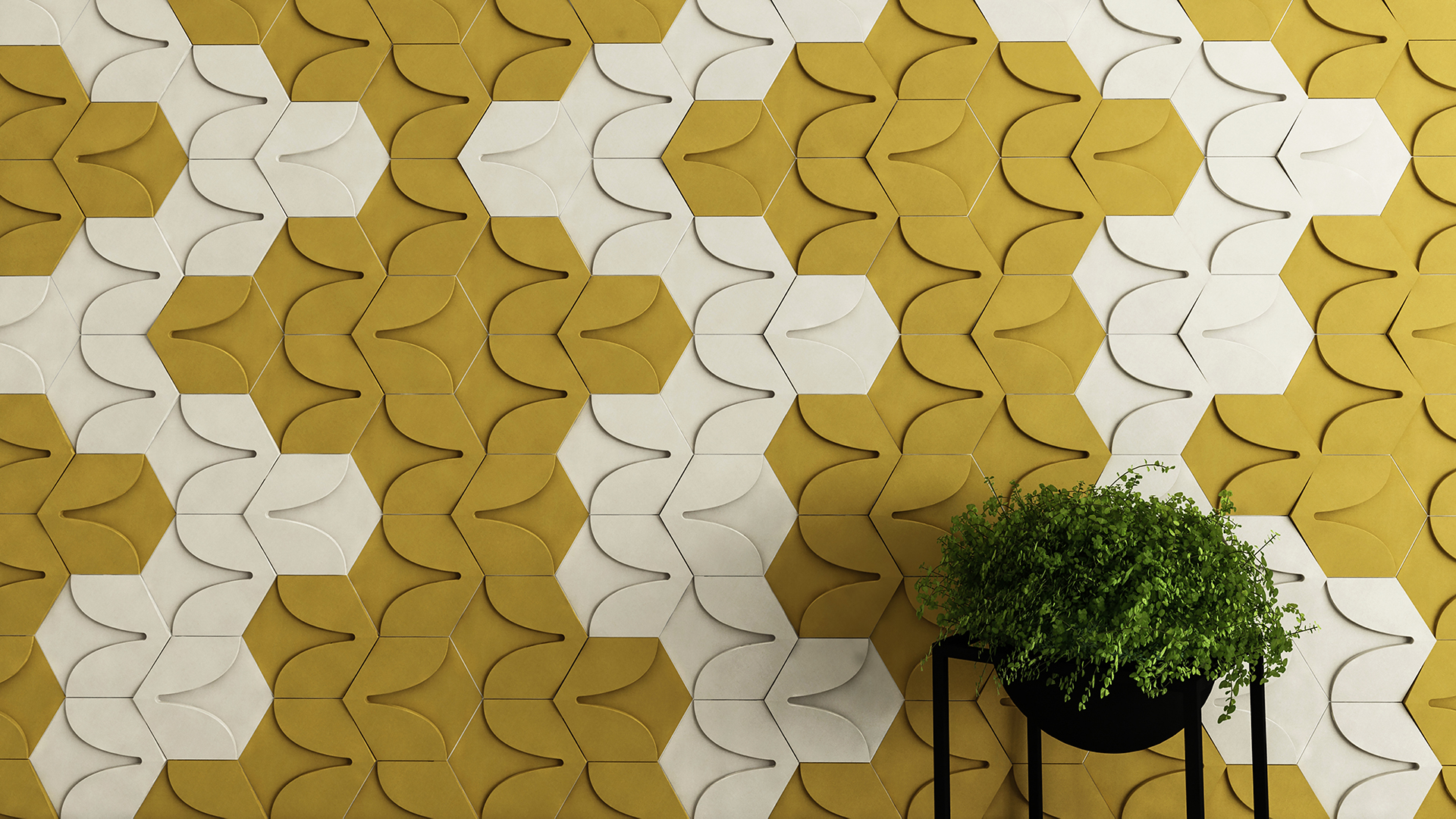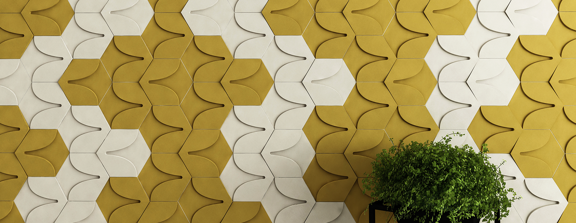 This collection is the reconsideration of the symbol of 3 little leaves branching out from one stalk, creating a pure and modern visual conception. The playful yet simple lines and the 3D arrangement envision the image of a tidy field of clovers. Laying the tiles of the collection on a smaller surface recalls the luxury of nature’s organic symmetry.