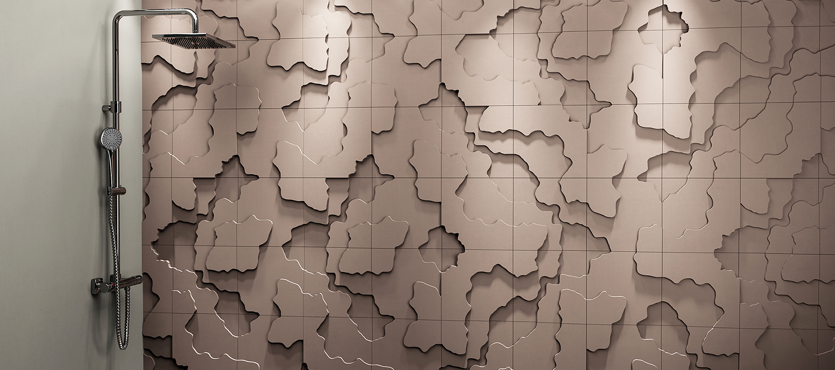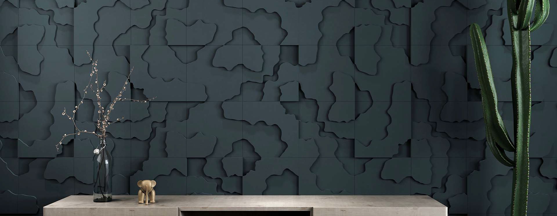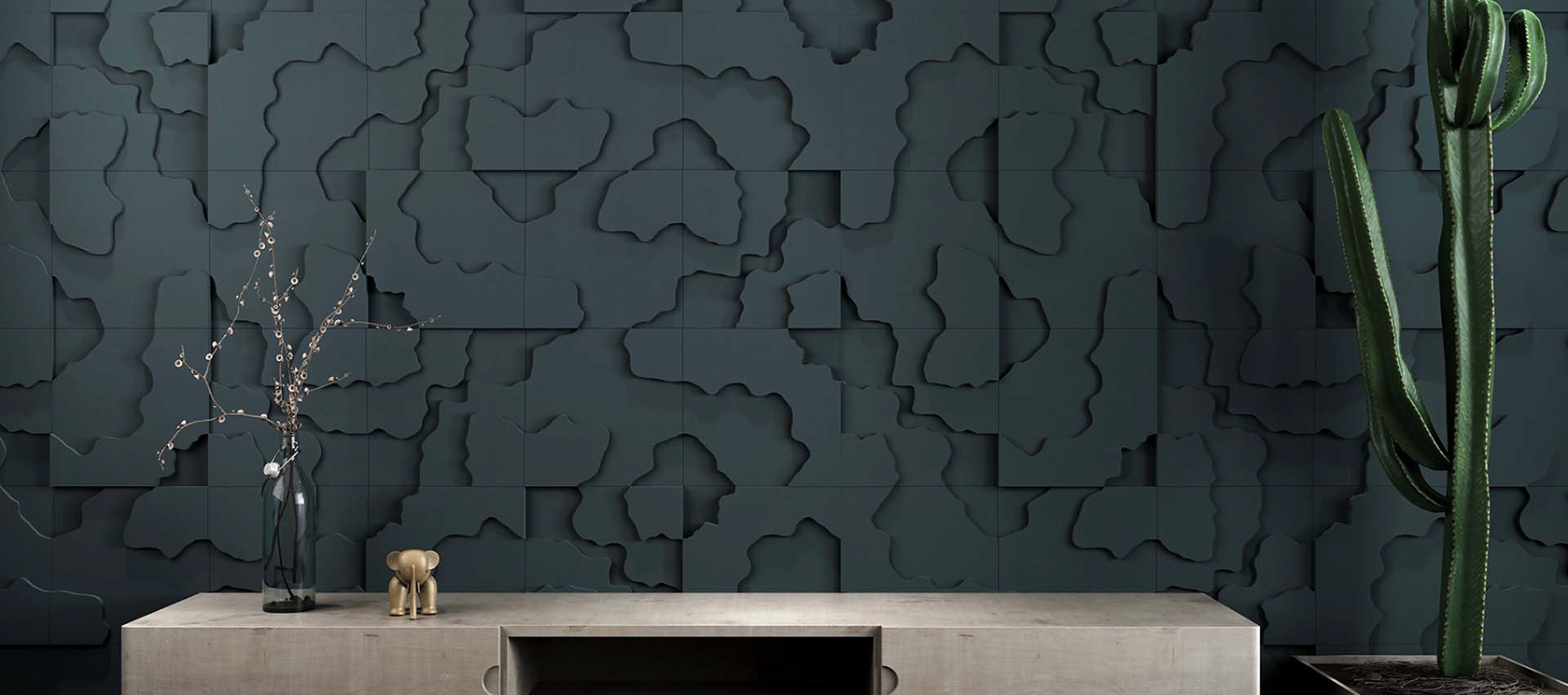 A természet szüntelenül mozgásban lévő ereje és aszimmetrikus rendezettsége ihlette a RIVER kollekciót. Foltszerű mintázata a folyó éles körvonal nélküli, de biztos hatását idézi. A 3D-s kollekció 3 különböző eleme biztosítja a variálhatóságot és a harmonikus dinamizmust. Monumentális felületeken sem kelt monoton hatást, és kihasználja a fény- és árnyék nyújtotta játékosságot.