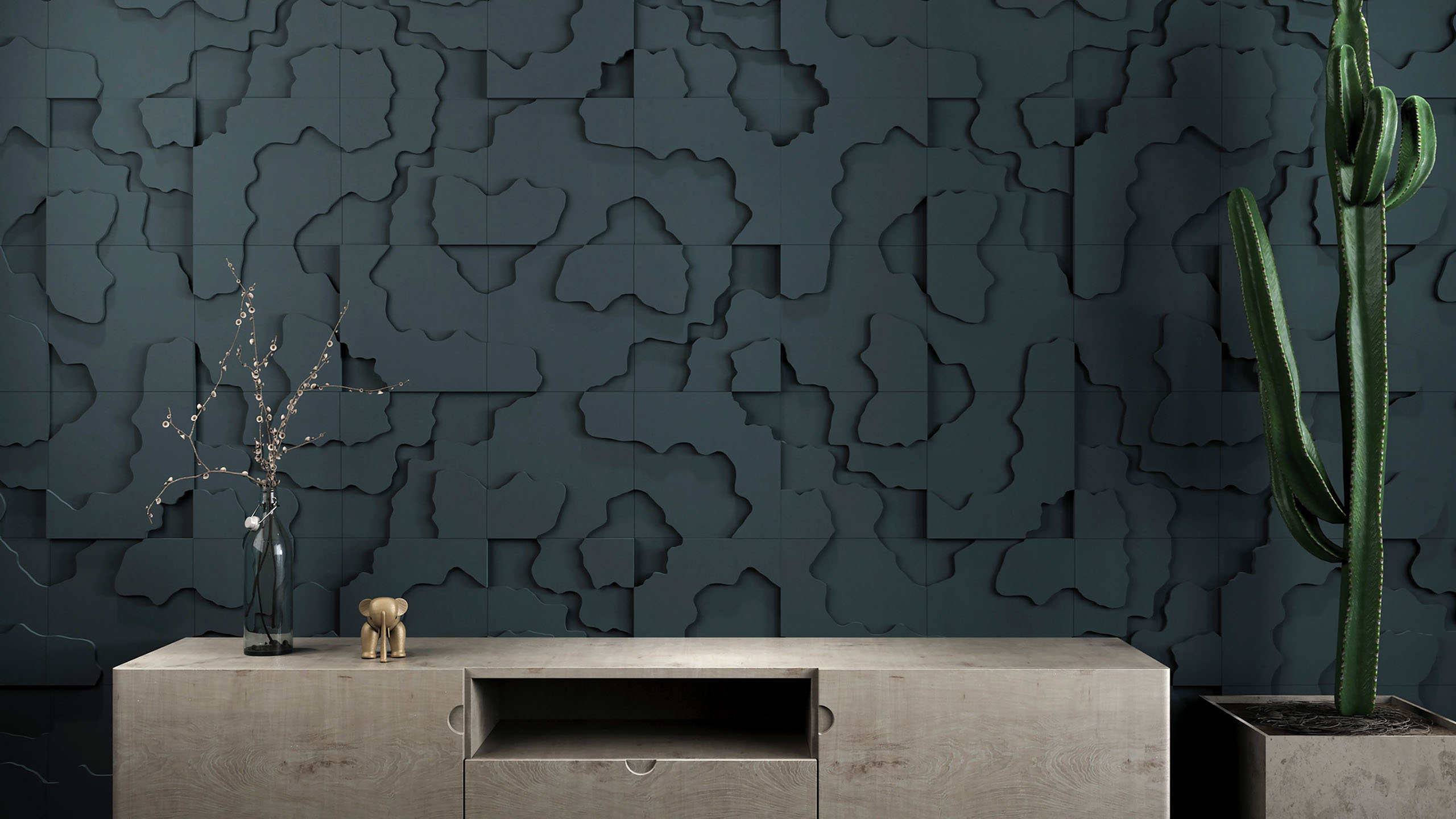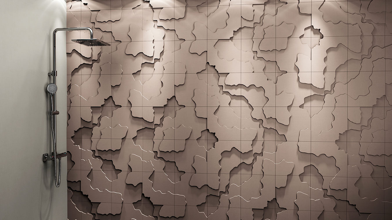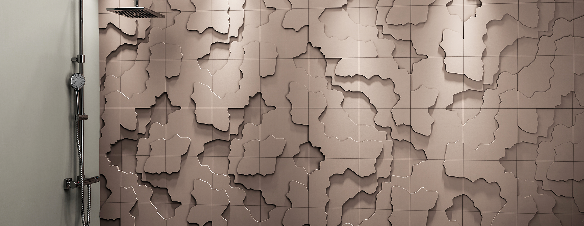 A természet szüntelenül mozgásban lévő ereje és aszimmetrikus rendezettsége ihlette a RIVER kollekciót. Foltszerű mintázata a folyó éles körvonal nélküli, de biztos hatását idézi. A 3D-s kollekció 3 különböző eleme biztosítja a variálhatóságot és a harmonikus dinamizmust. Monumentális felületeken sem kelt monoton hatást, és kihasználja a fény- és árnyék nyújtotta játékosságot.